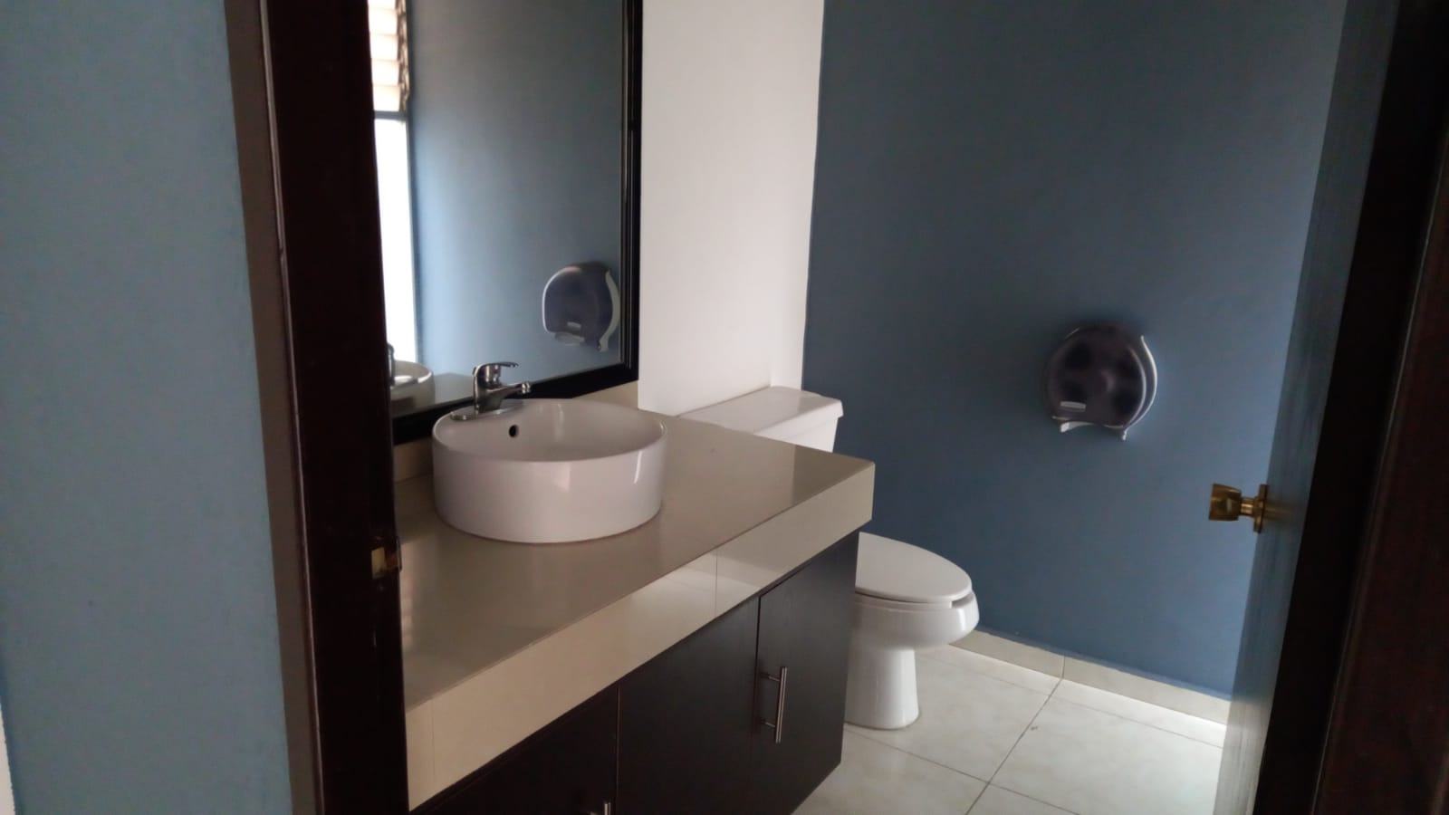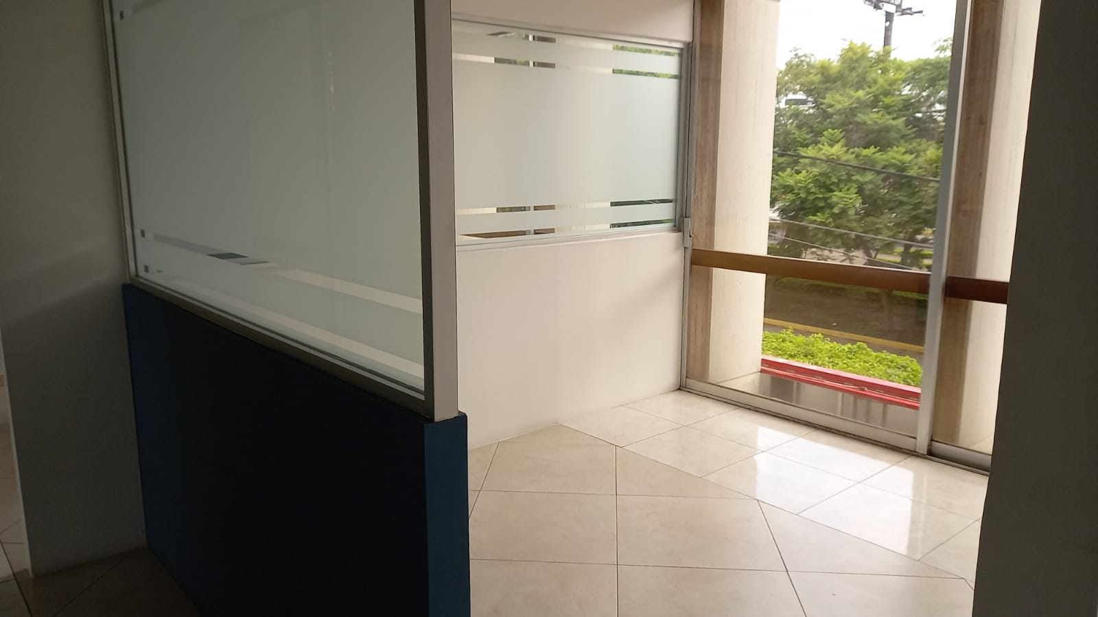 Cuenta con 4 privados, uno tiene baño., sala de juntas, bodeguita, área de comedor, cocineta y dos cajones de estacionamiento.